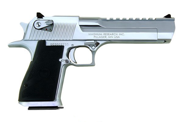 Magnum Research MGR DE MK XIX 50AE PST 6PC: DE50PC: 761226022985: Pistol: Semi-Auto: Desert Eagle: 50 AE: Single Action: 7+1: Polished Chrome: Hogue Two Panel Rubber: Fixed: 6 Chrome Lined Barrel: 10.75: Full Picatinny Rail with Eight Mounting Slots