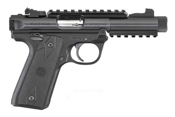 Ruger RUG MK-IV 2245 TAC 22PST 4.4B: 40149: 736676401499: Pistol: Semi-Auto: Mark IV: 22LR: Single Action: 10+1: Black Oxide: Black Synthetic Checkered 1911-Style: Front: Fixed Rear: Adjustable: 4.4 1/2×28 Threaded Barrel: 8.5: Magazine Disconnect/ Top and Bottom Picattiny Rails