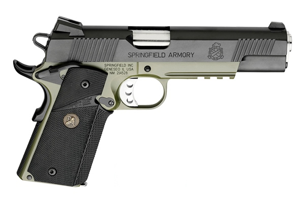 Springfield Armory SPG 1911 OP AOS 45 OD/B RNG CA: PX9105MLCA18: 706397919597: Pistol: Semi-Auto: 1911|Full Size: 45 AUTO: Single Action: 7+1: Slide-Blue/ Frame-Olive Drab Grn Armory Kote: Pachmayr Rubber Wrap-around Grips: Fixed Combat Trijicon Night Sights: 5: 8.5: Delta Lightweight Hammer/ Lwt Speed Trigger
