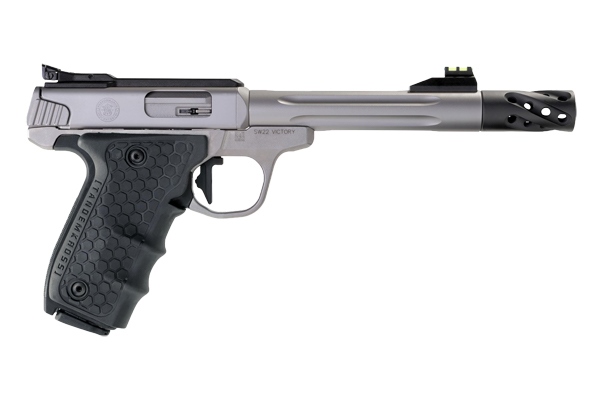 Smith & Wesson S&W SW22 VICPC TGT 6SS HVZ AS: 12078: 22188875546: Pistol: Semi-Auto: SW22: 22LR: Single Action: 10+1: Stainless: Tandemkross HiveGrips With Target Thumbrest: Front: Fiber Optic Rear: Fiber Optic Adjustable: 6: 11.25: Fluted Barrel/ Flat Face Target Trigger W/ ADJ Stop