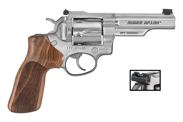 Ruger RUG GP100-MC 357 DA REV 4.2SS: 1755: 736676017553: Revolver: Double Action: GP100: 357 MAG: Double Action: 6: Satin Stainless: Custom Hogue Stippled Hardwood Grips: Front: Fiber Optic Rear: Adjustable: 4.2: 9.5: Slab-Sided/ Half-Lug Barrel/ Contoured Cylinder
