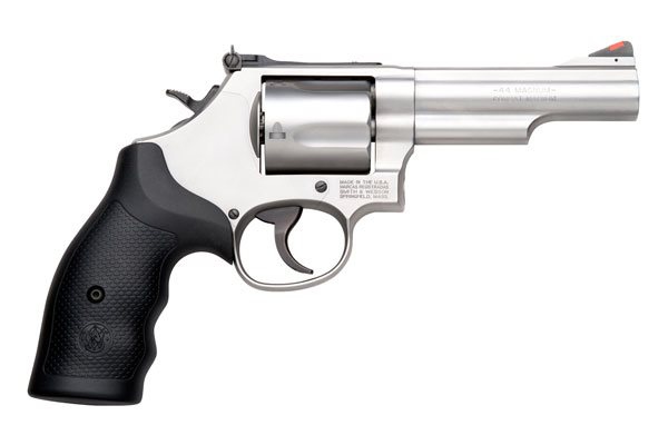 Smith & Wesson S&W 69 44M DA 4.25SS 5RD AS: 162069: 22188620696: Revolver: Double Action: 69|Combat Magnum: 44 REM MAG: Double Action: 5: Glass Bead Stainless Steel: Synthetic Grip: Front: Red Ramp Rear: Blade/ Adjustable: 4.25: 9.75: Full Top Strap and Barrel Serration/ L Frame